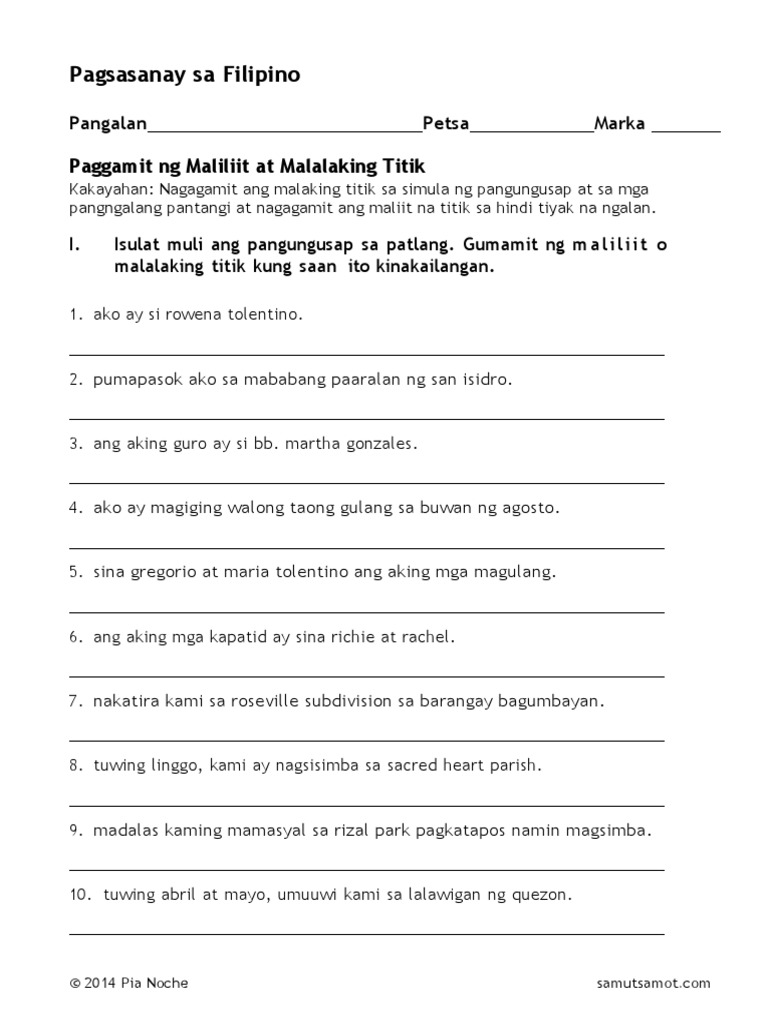 Wastong Pagsulat ng Pangungusap Worksheet 1 - Fun Teacher Files