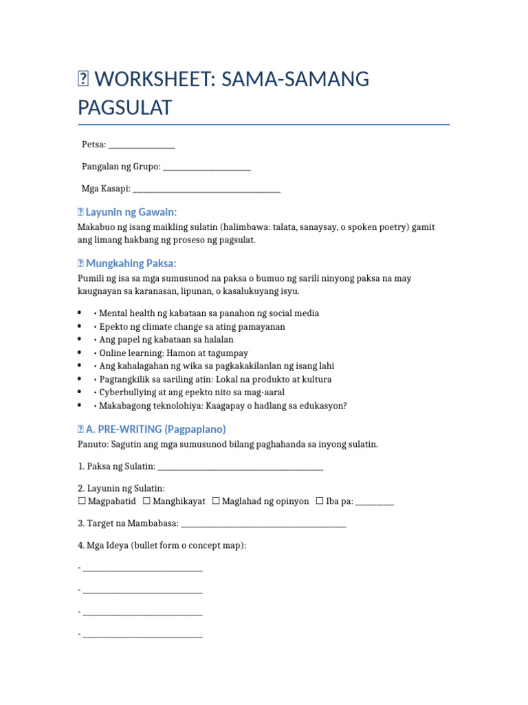 Pagsulat worksheet