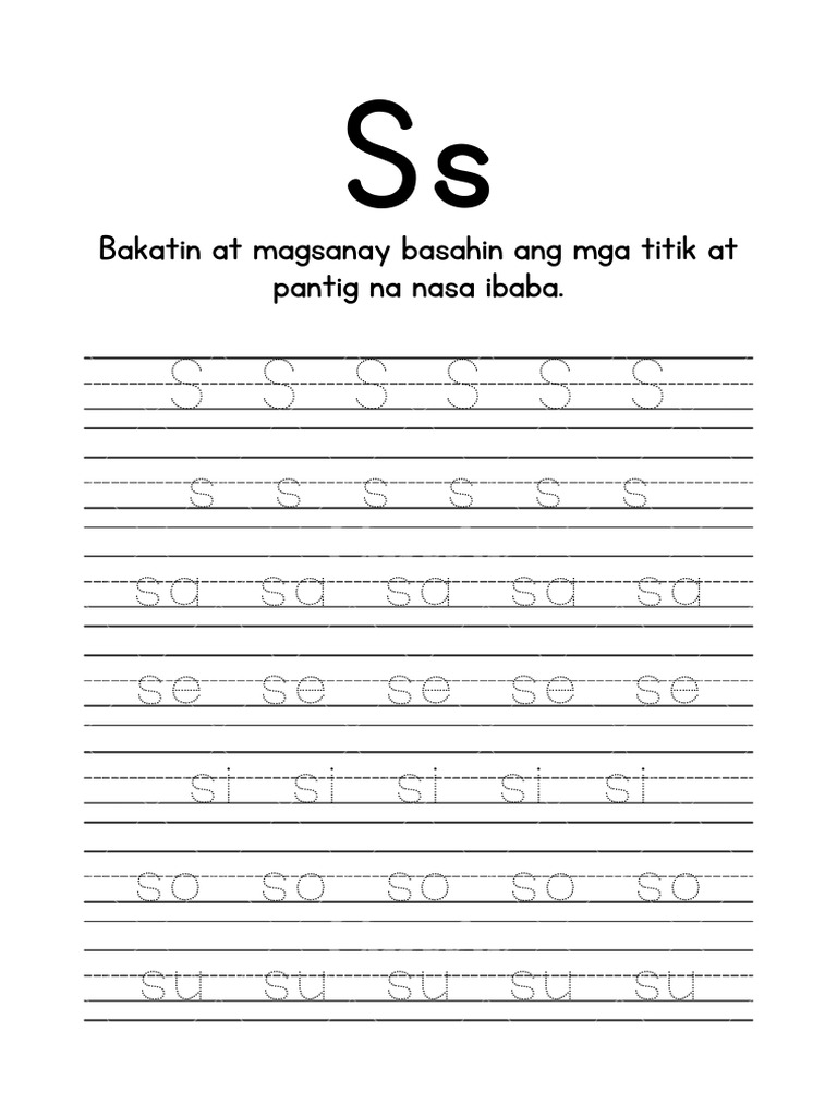 Pagbasa at Pagsulat NG Titik S Worksheet in Simple Greyscale Style ...