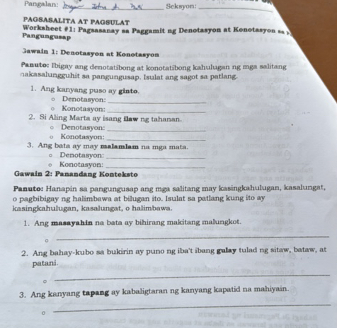Worksheet Sa Pagbasa at Pagsulat | PDF
