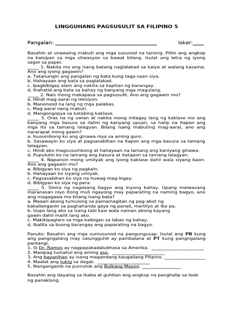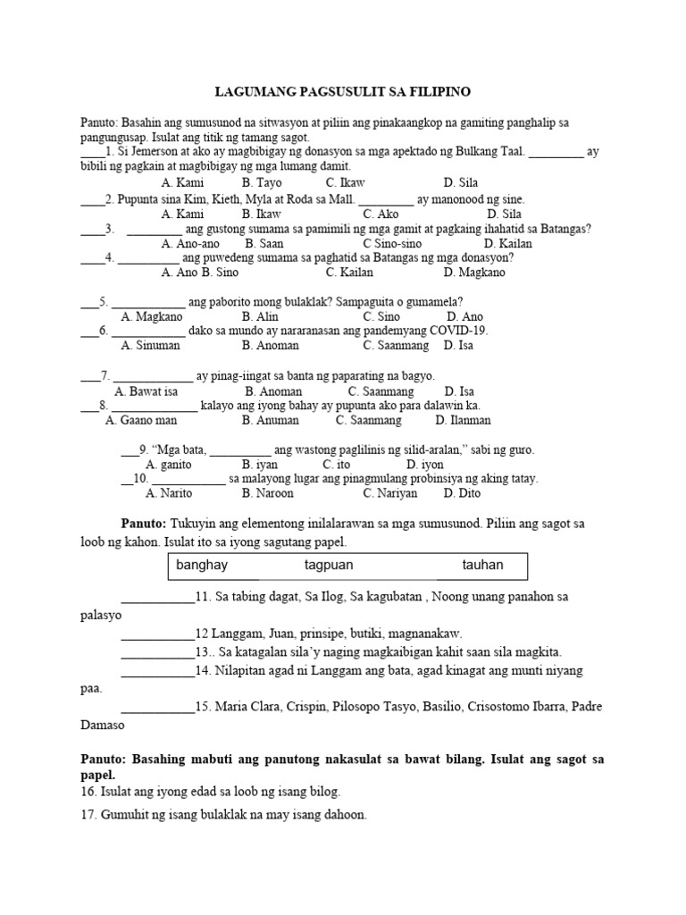 Maikling Pagsusulit Sa Filipino | PDF