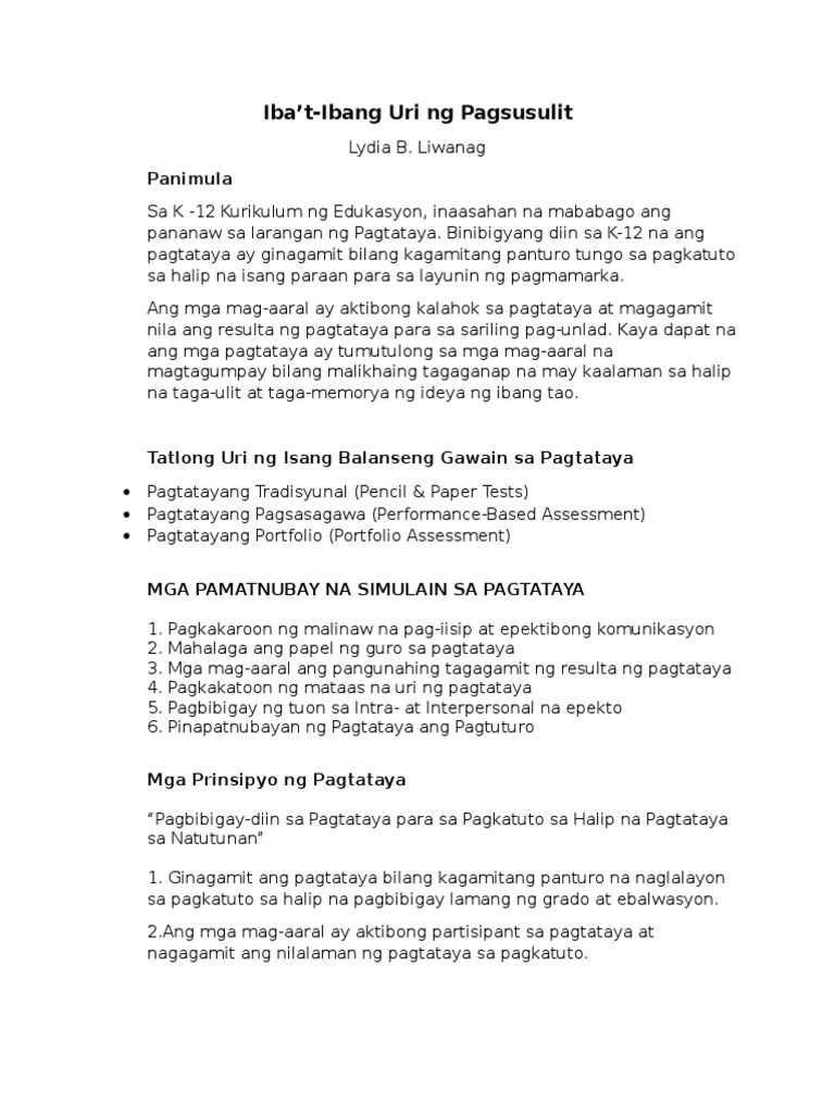 Ibat Ibang Uri NG Pagsusulit | PDF