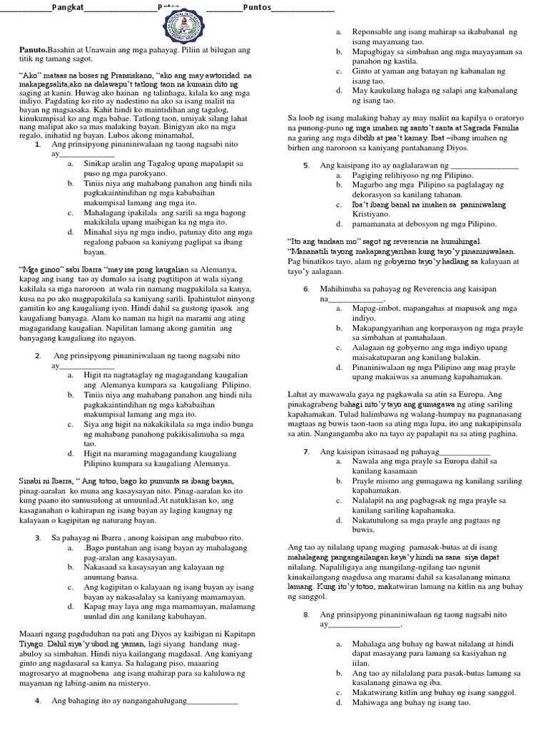 Halimbawang Pagsusulit Sa Filipino | PDF