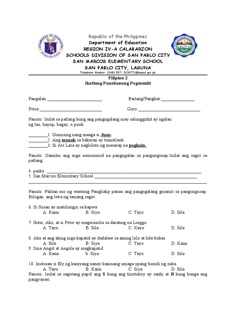 Unang Maikling Pagsusulit sa - Unang Maikling Pagsusulit sa Filipino sa ...