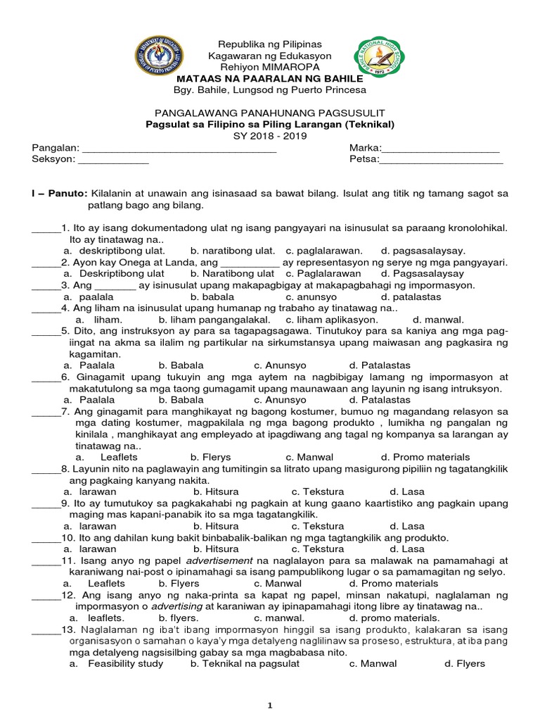 Panimulang Pagsusulit 2019 | PDF