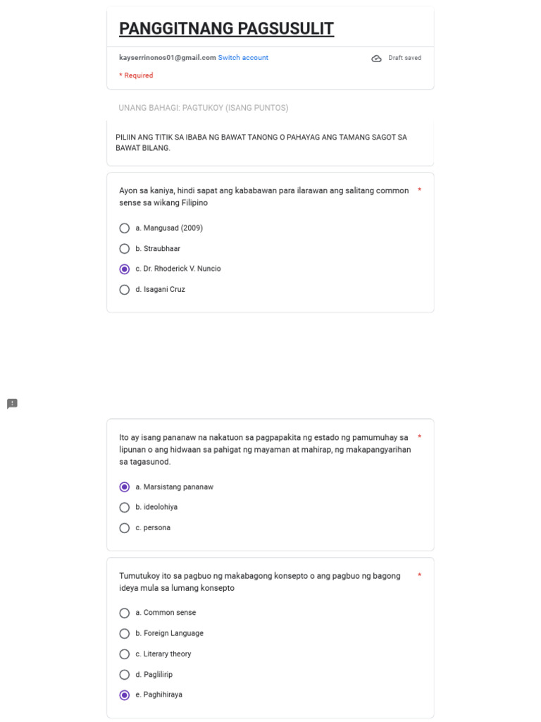 Halimbawang Pagsusulit Sa Filipino | PDF