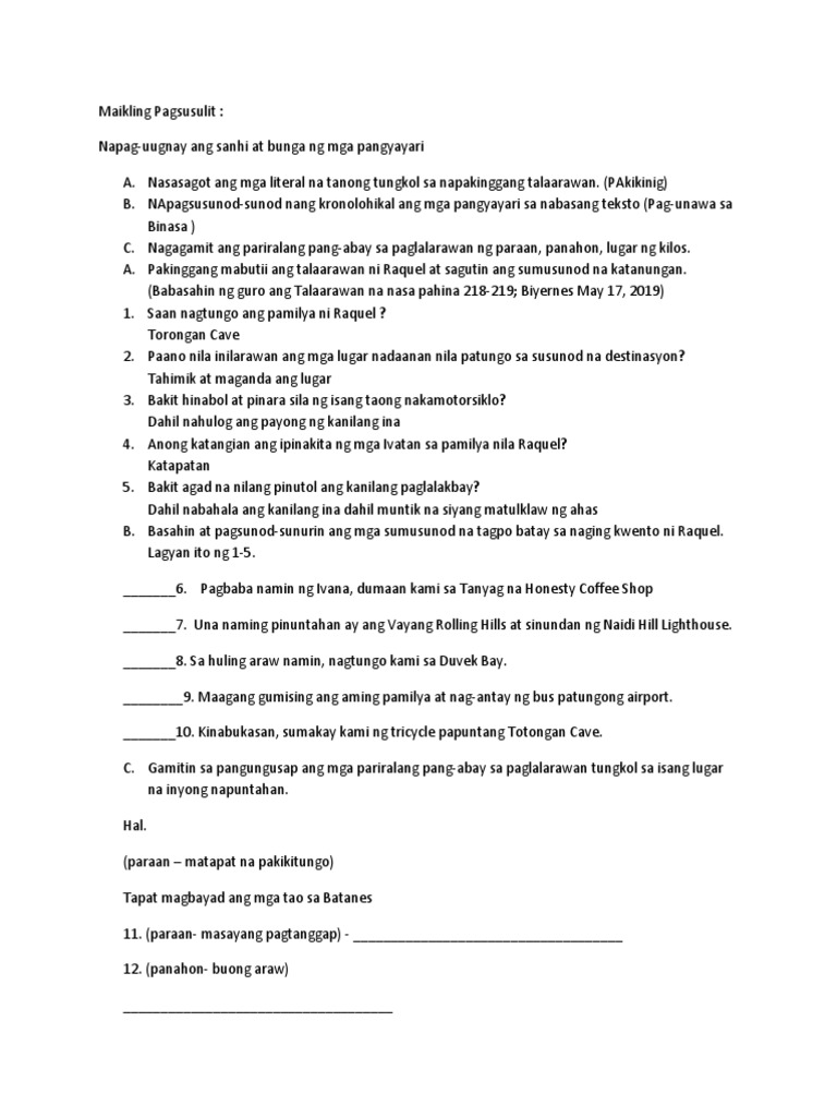 MAIKLING PAGSUSULIT 1-3 online exercise for | Live Worksheets