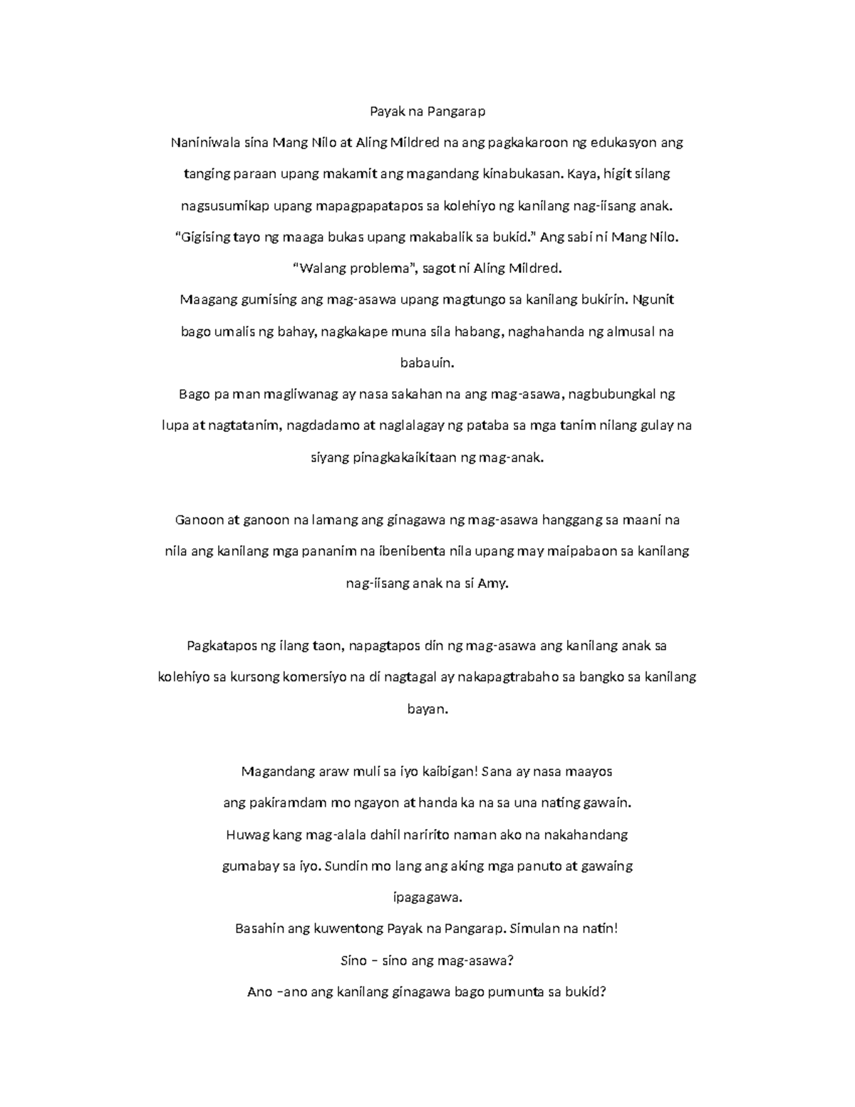 Payak na Pangarap: Kuwento ng Pagsusumikap at Edukasyon (Filipino 6 ...