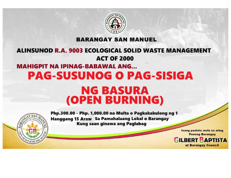 BAWAL ANG PAGSUSUNOG NG BASURA !!! BAWAL PO ANG PAGSUSUNOG NG BASURA ...