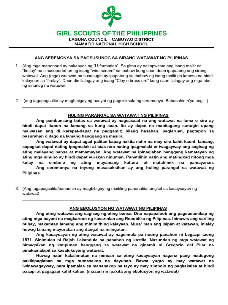 Ang Seremonya Sa Pagsusunog Sa Sirang Watawat NG Pilipinas | PDF