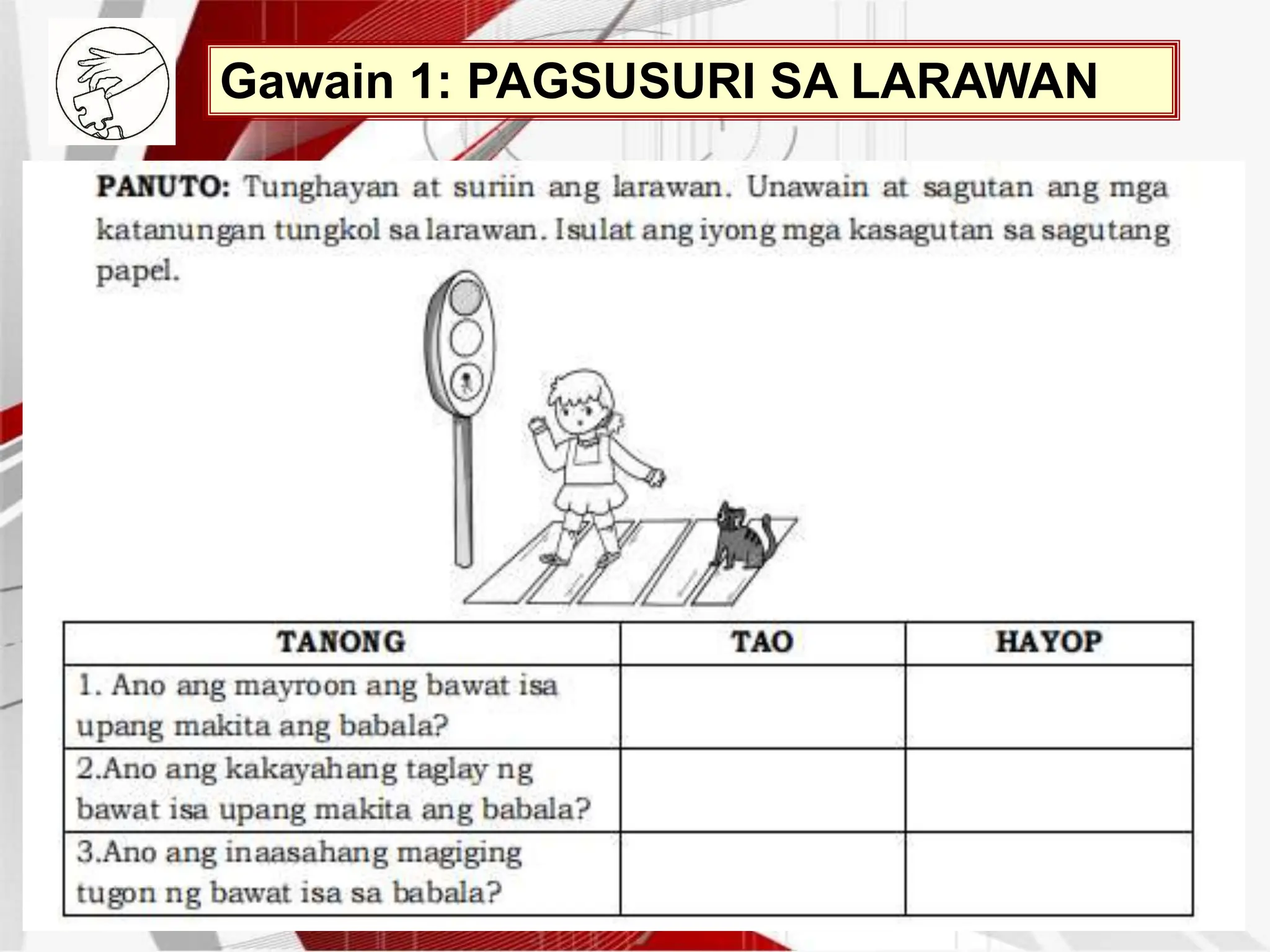 Gawain: Pagsusuri sa larawan Panuto: Suriing mabuti Ang larawan at ...
