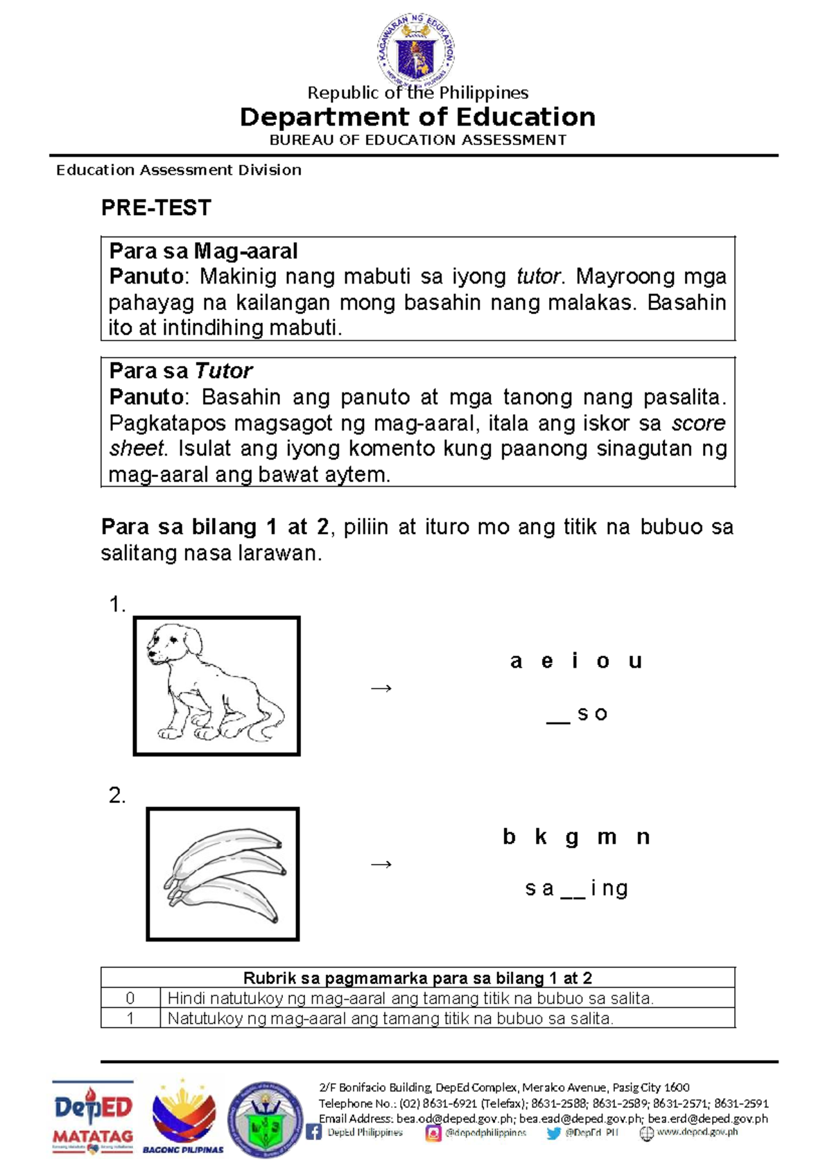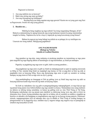 Pretest TBTP Filipino 05: Pagsusuri ng mga Larawan at Kuwento - Studocu