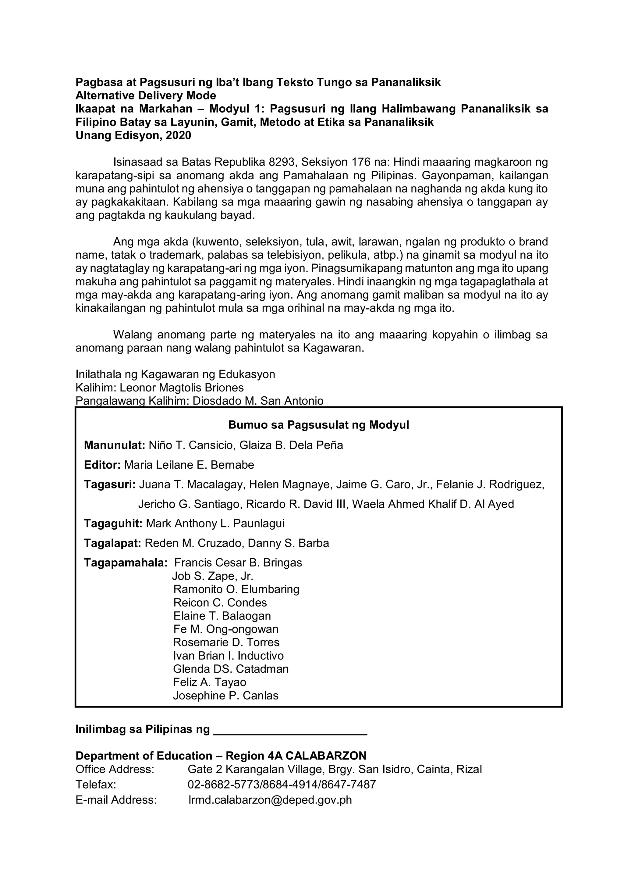 Solved: Panuto: Simulan mo ang modyul na ito sa pamamagitan ng ...