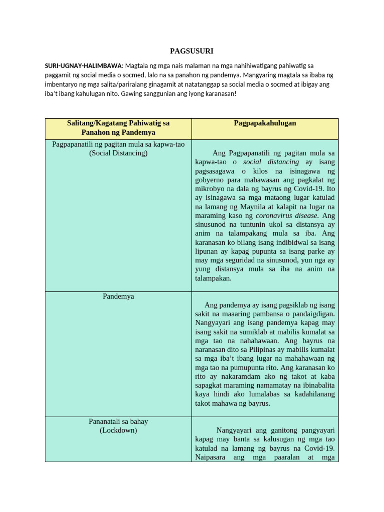 Pagsusuri Sample | PDF