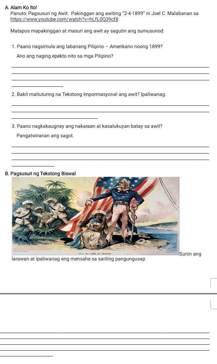 Gawain 3: Pagsusuri ng Larawan B. Panuto: | StudyX