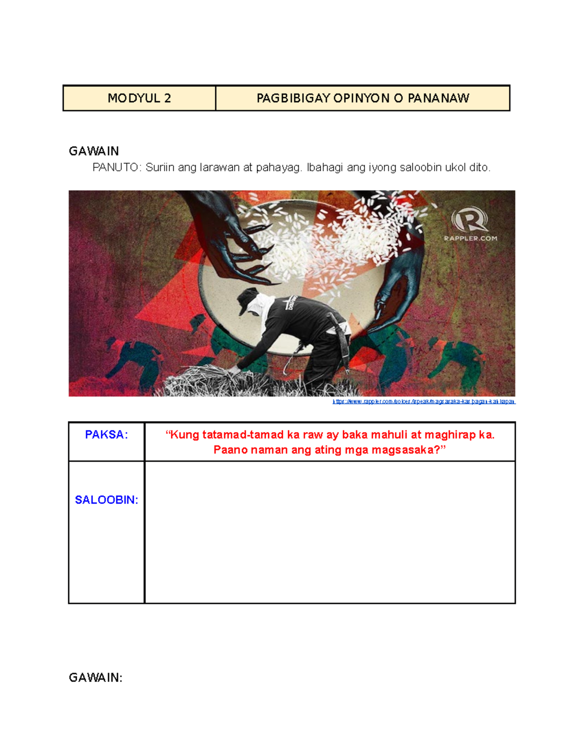 Gawain sa Opinyon: Pagsusuri ng Larawan at Ulat - Modyul 2 - Studocu