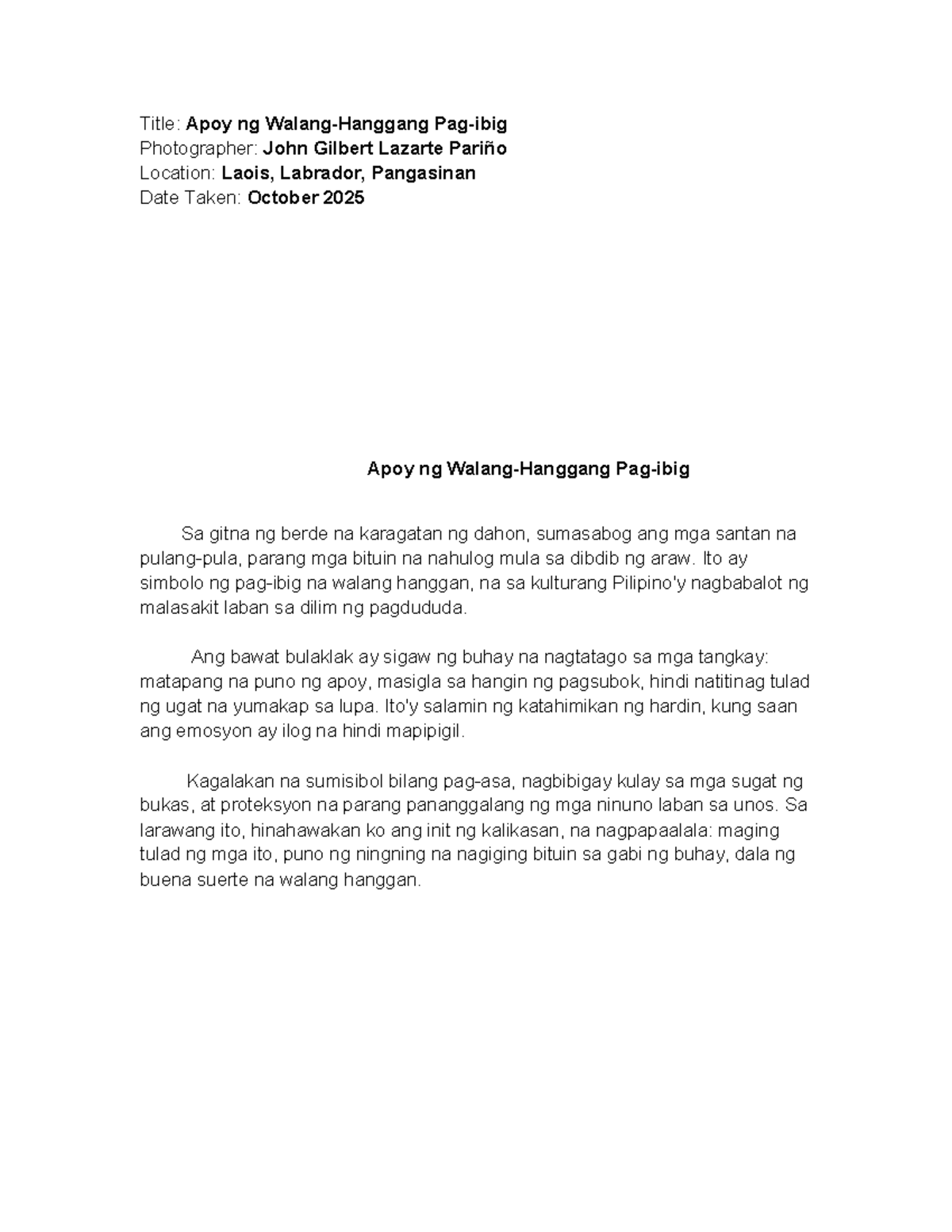 Apoy ng Kalikasan: Isang Pagsusuri ng Larawan ni John Gilbert Lazarte ...