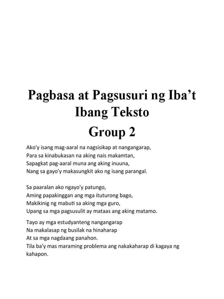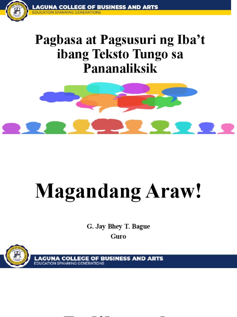 SOLUTION: Pagbasa at Pagsusuri ng Iba’t Ibang Teksto Tungo sa ...