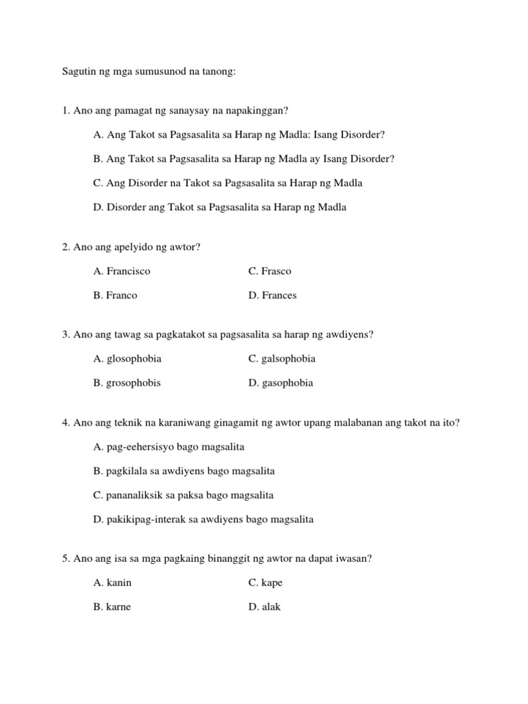 Pre-Test Sa Pagbasa at Pagsusuri | PDF