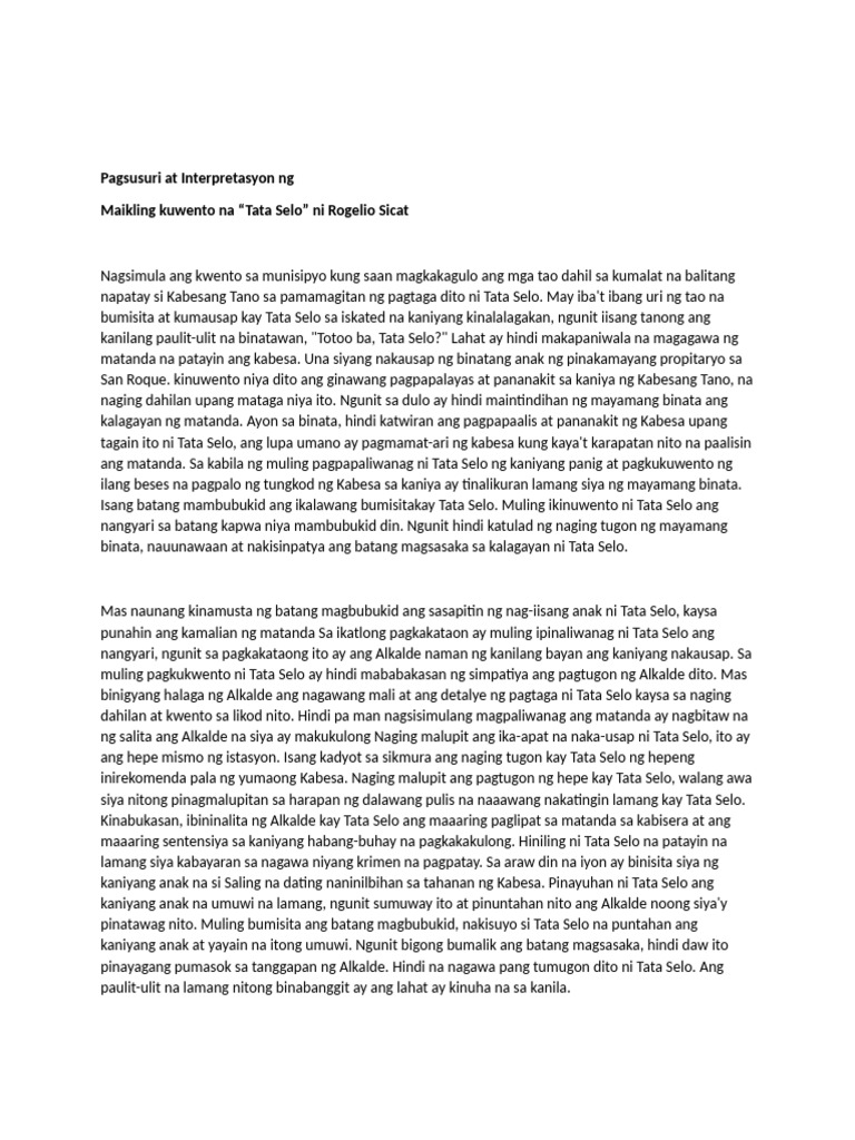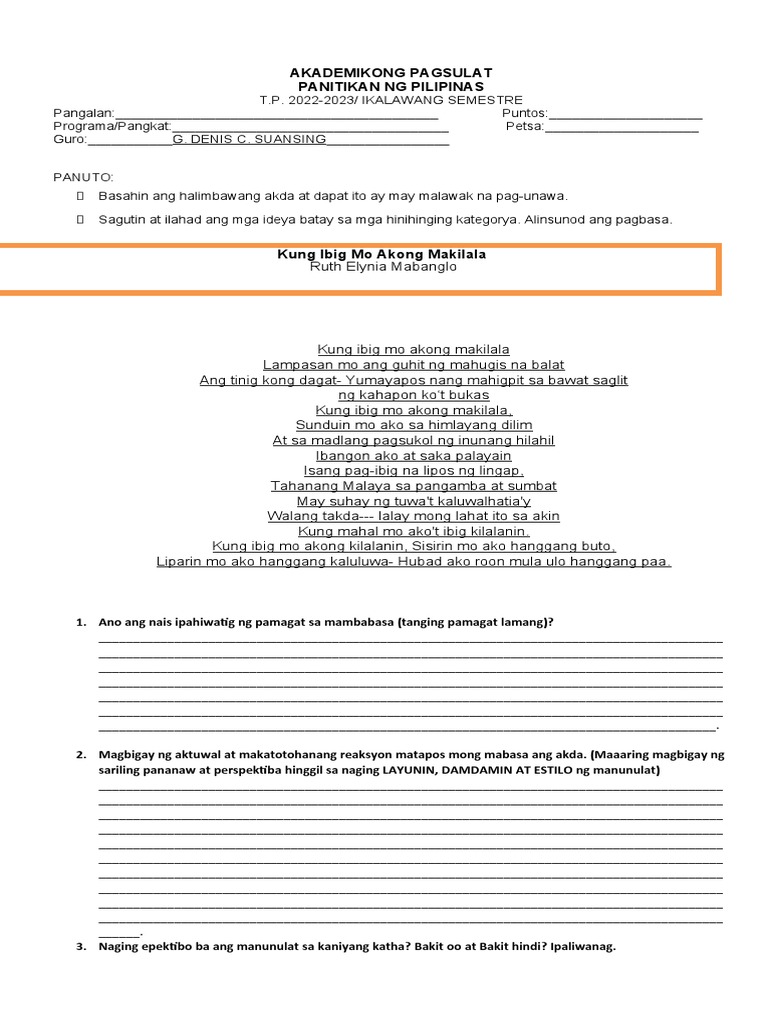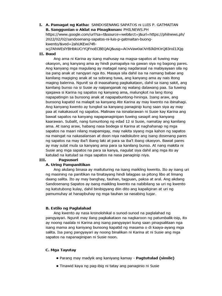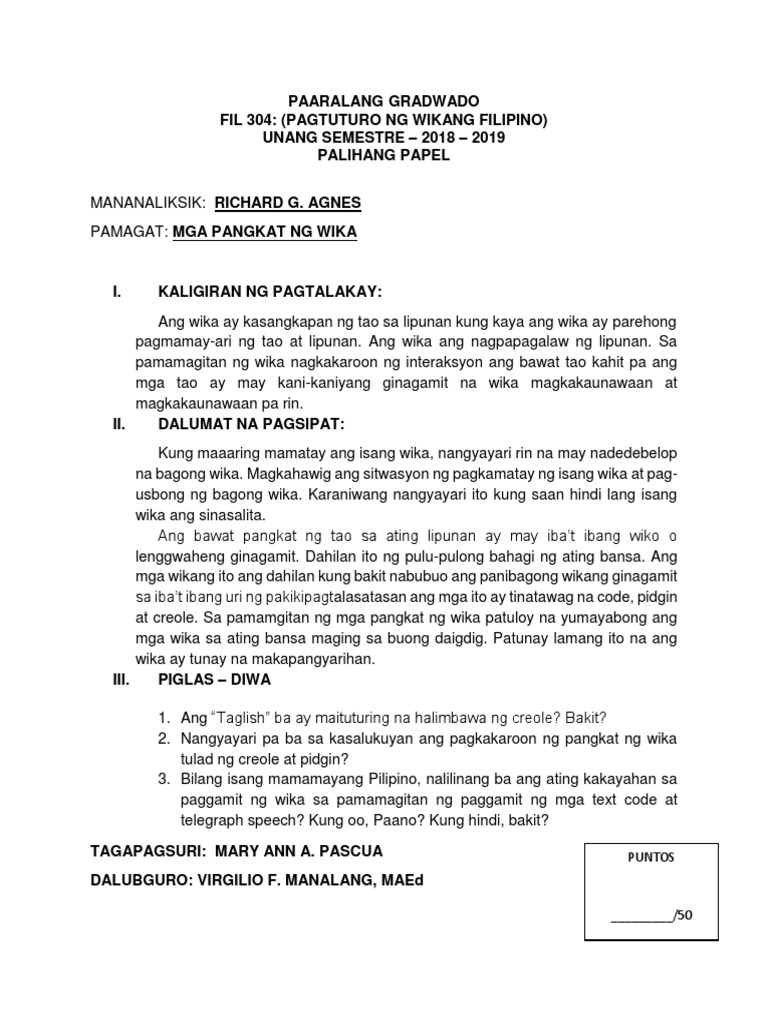 SOLUTION: Pagbabasa at pagsusuri grade 11 filipino - Studypool