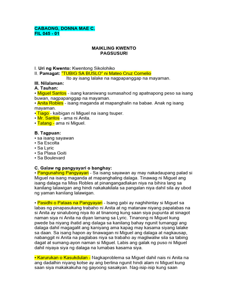 Pagsusuri Sa Elemento Ng Abstrak | PDF