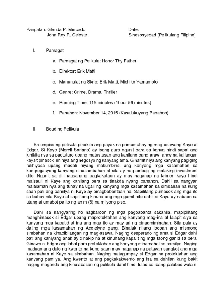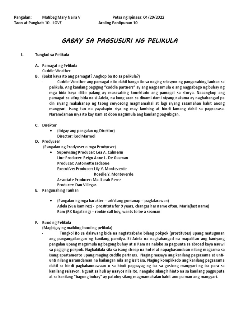 SOLUTION: Mga pangunahing elemento sa pagsusuri ng pelikulang ...