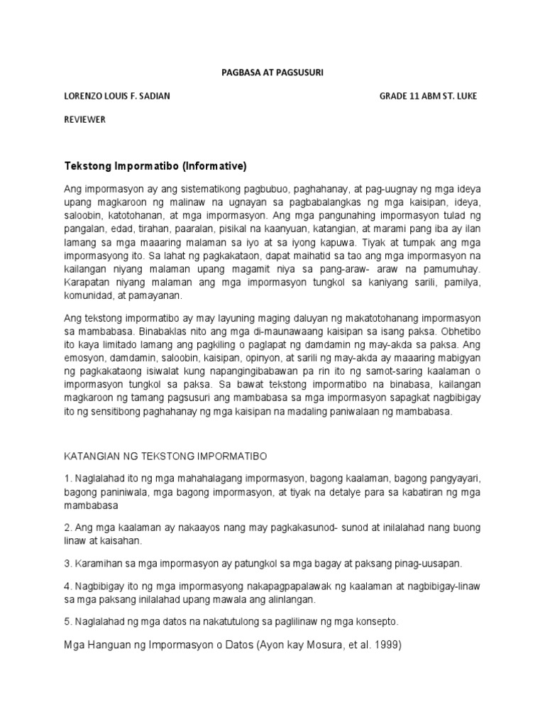 Pagbasa at Pagsusuri (Reviewer) | PDF