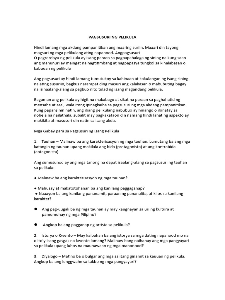 Pagsusuri NG Pelikula - Lesson Plan | PDF