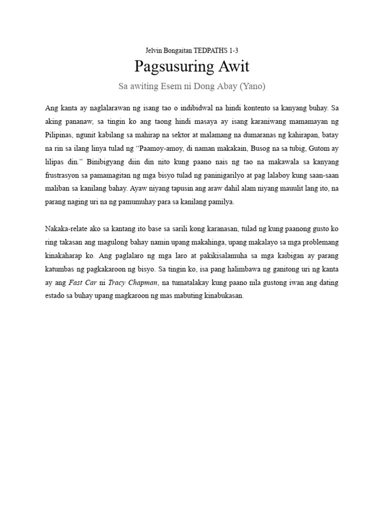 Pagsusuri Halimbawa GRADE 11 Pagsusuri Ng Mga Halimbawang Teksto