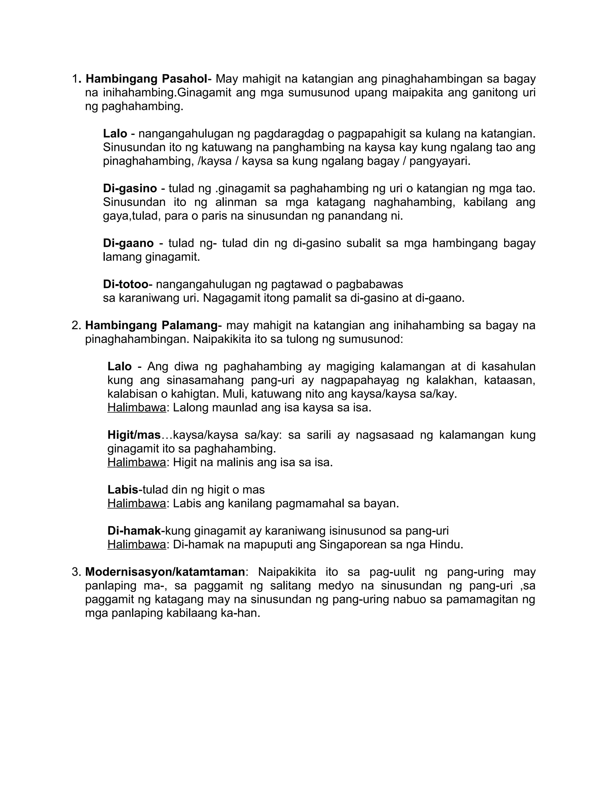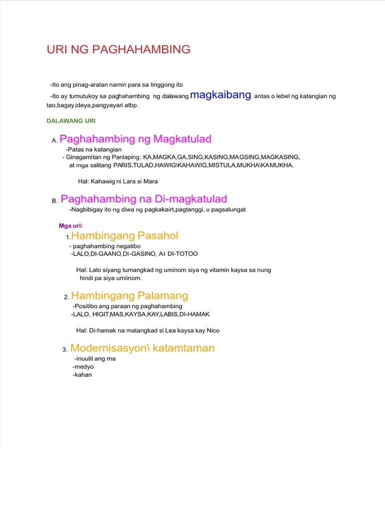 Lektura - Uri NG Paghahambing | PDF