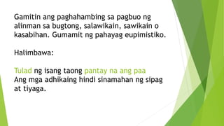 Matatalinhaga, eupimismo at paghahambing | PPTX