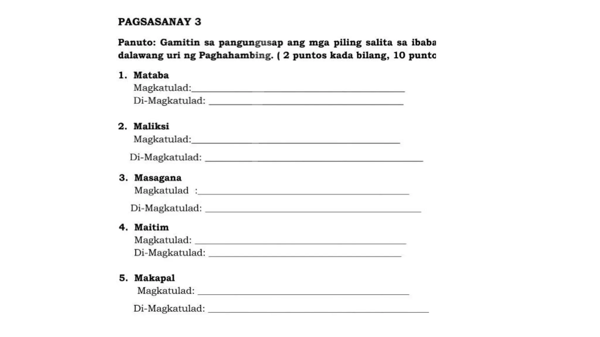 Paghahambing - Handouts - Pangalan ...