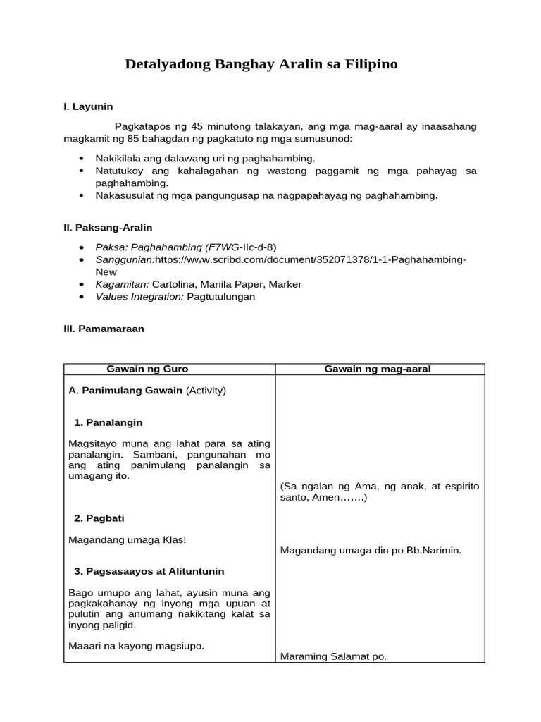Lesson Plan Paghahambing | PDF