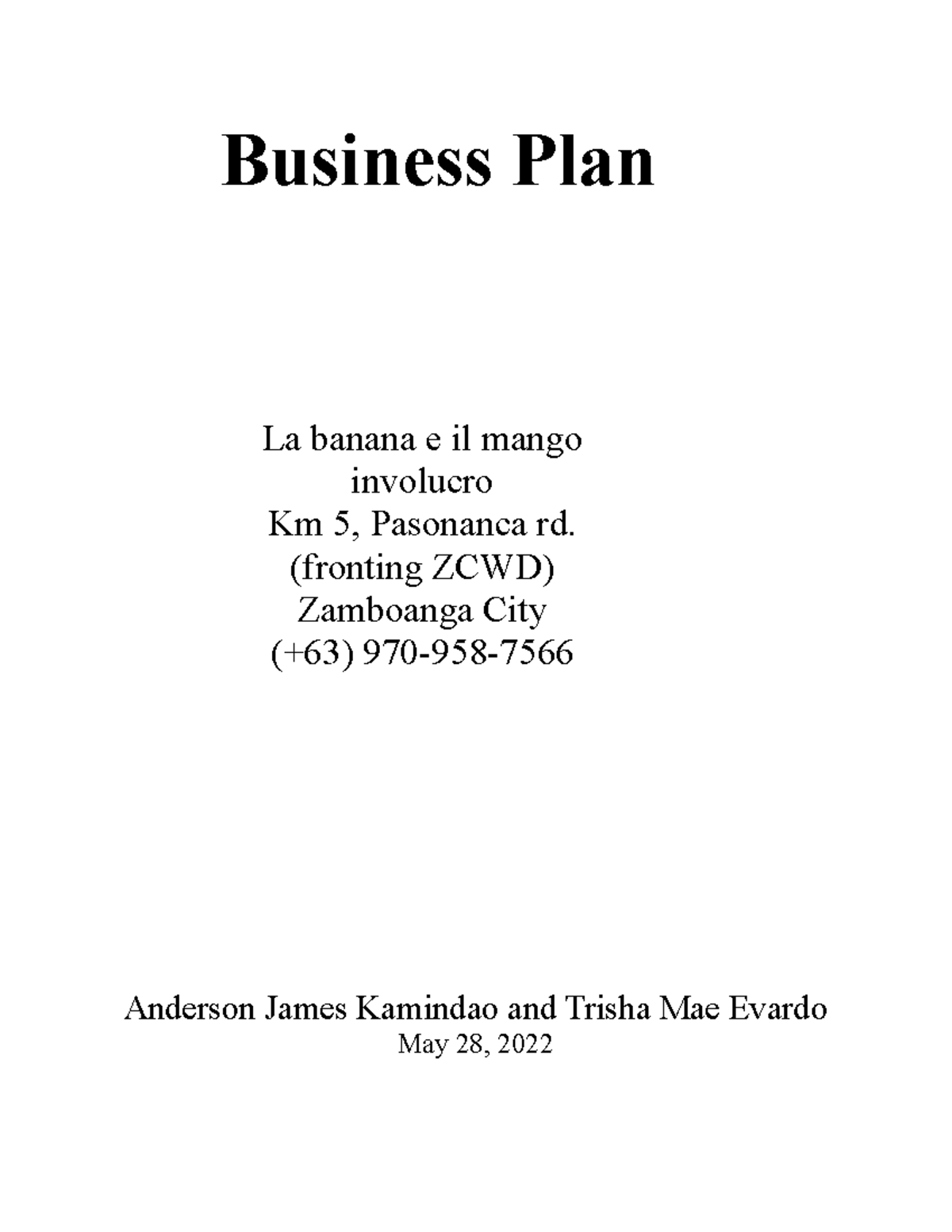Pahinge-ng-pahinga - Rad - Business Plan La banana e il mango involucro ...