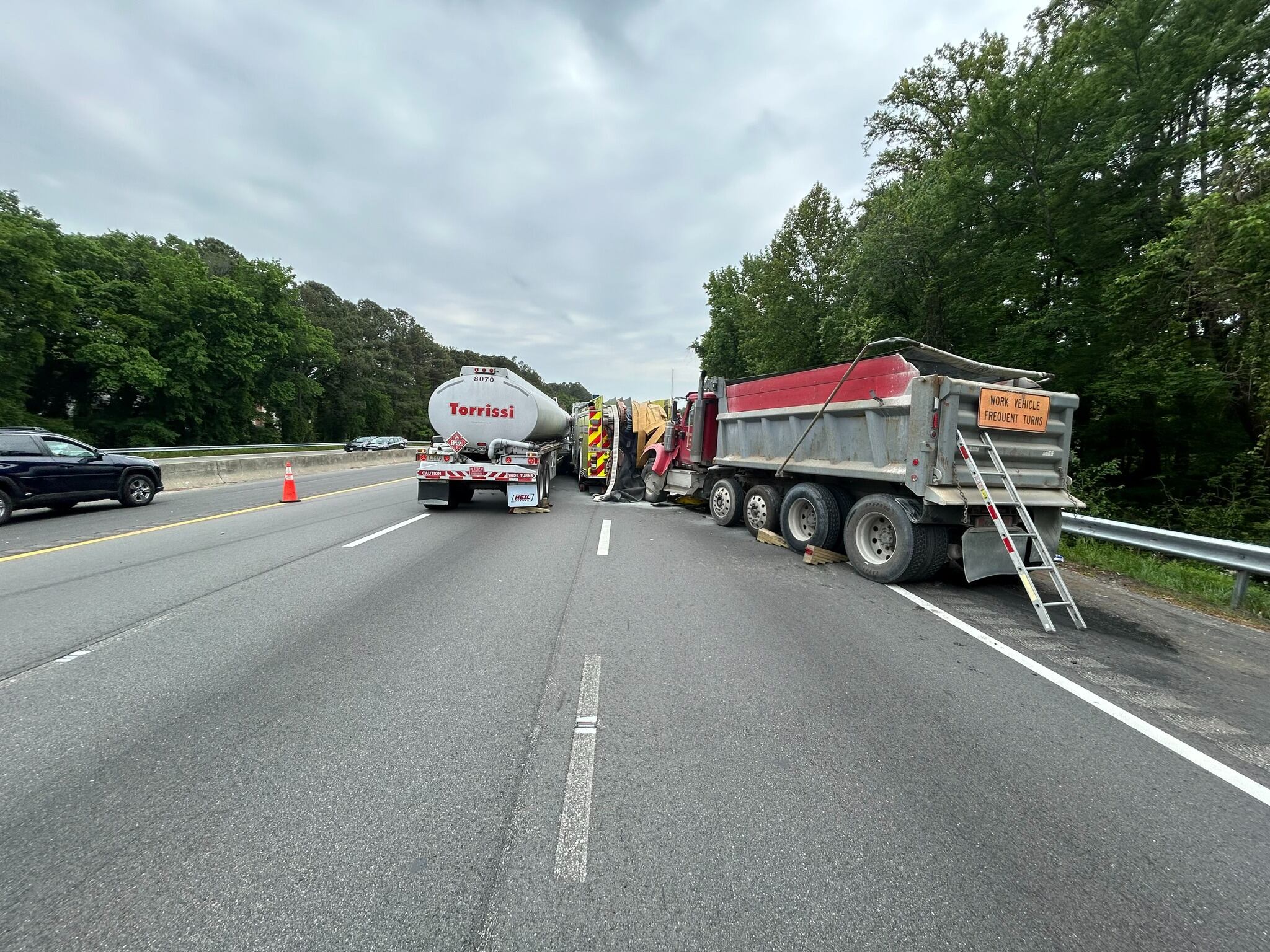 Dump truck hits Henrico fire engine on Parham Road causing delays