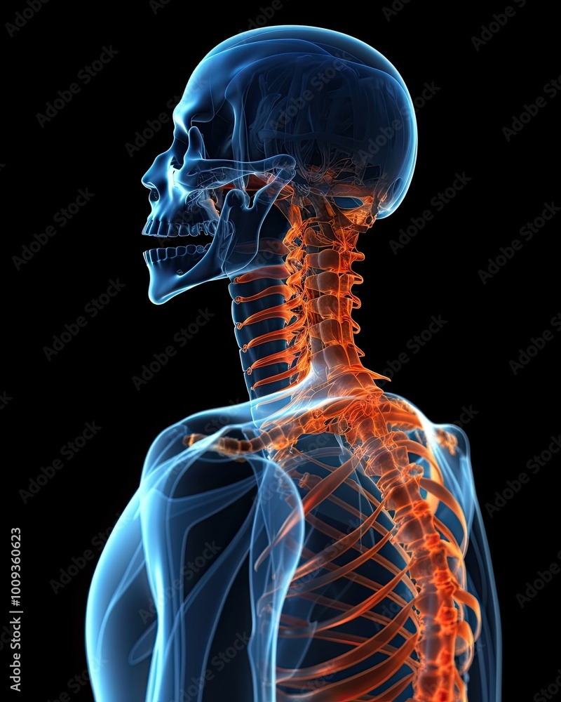 Spinal Pain Visualization: 3D X-ray of Human Skeleton Highlighting ...
