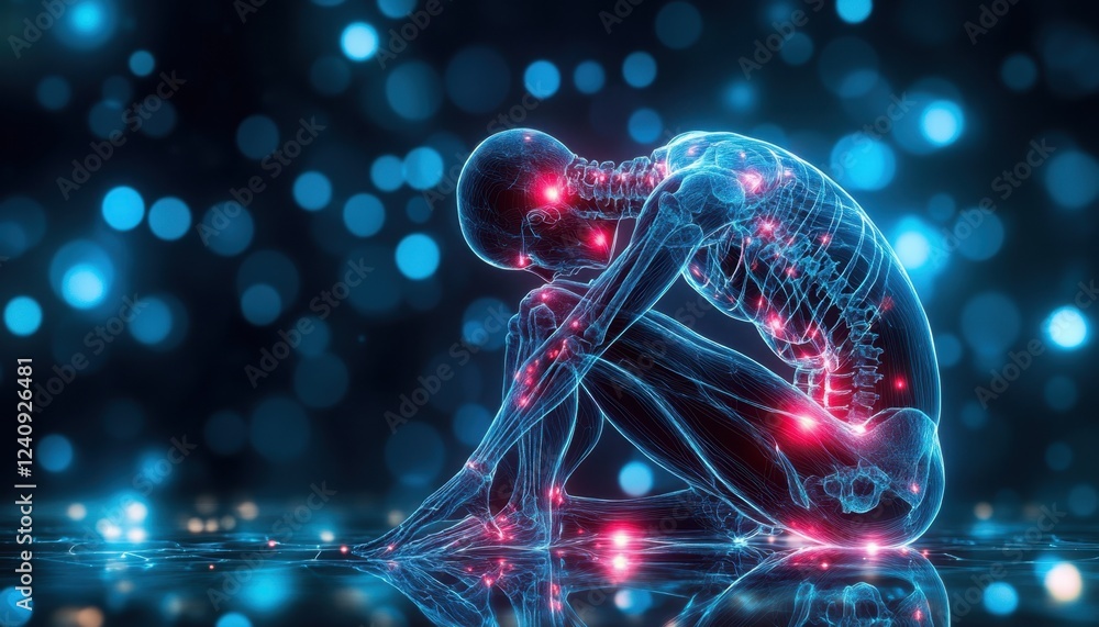 Digital Art Concept of Woman with Neck Pain Glowing Bones Visualization ...