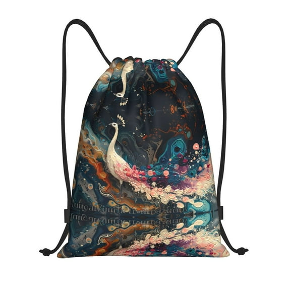 Balery Abstract Peacock Painting Pattern Drawstring Backpack Bag Sport ...
