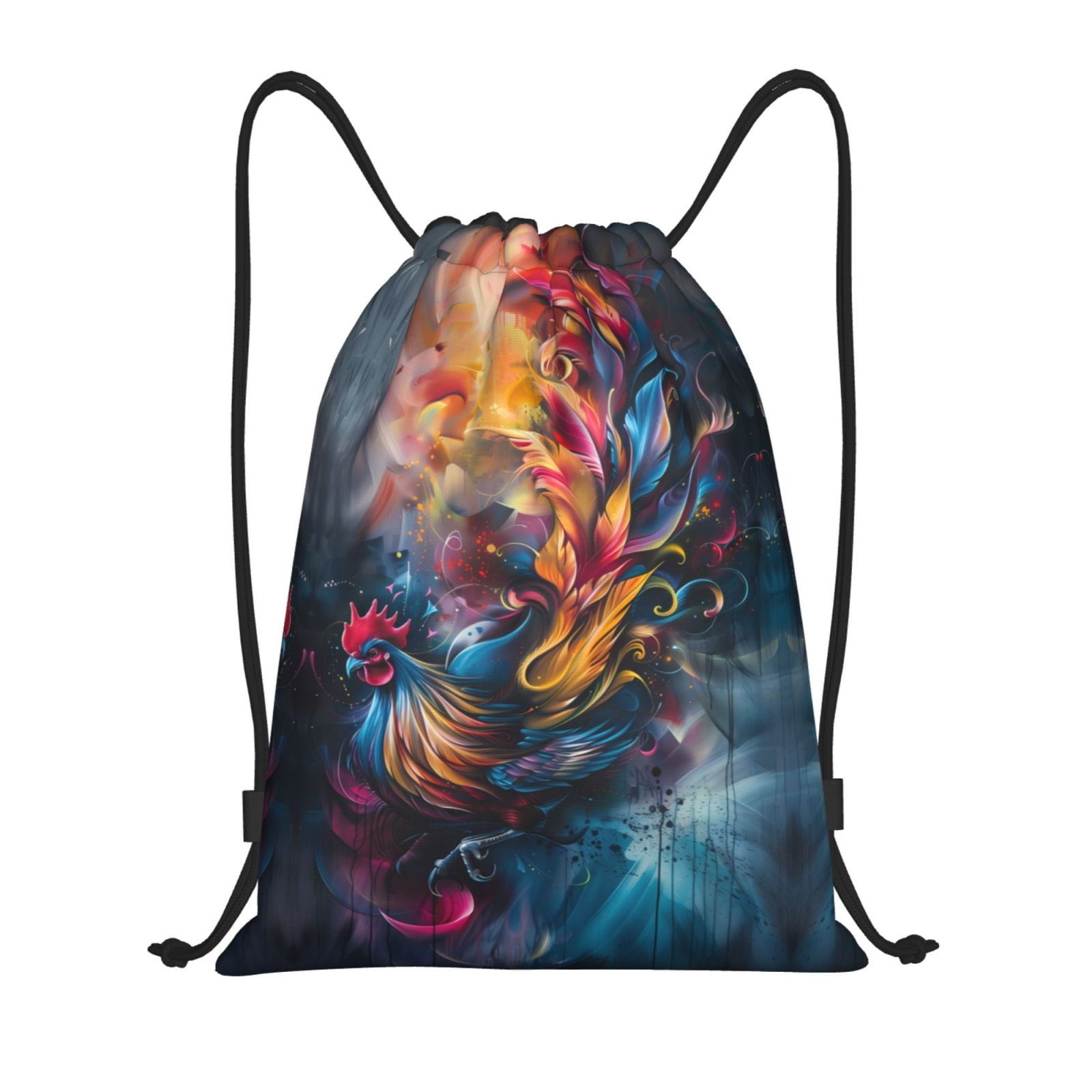 Drawstring Backpack - Vibrant Rooster Painting Splash Proof Small ...