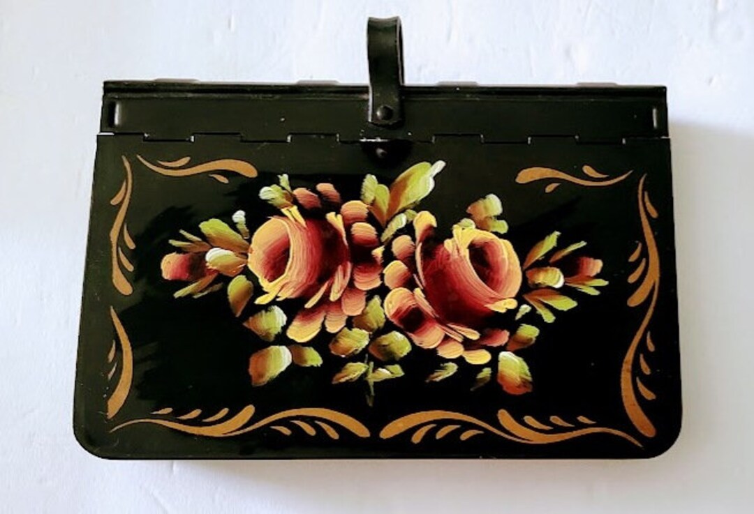 1940's Silent Butler Toleware Hand Painted Roses Decorative Metal Crumb ...