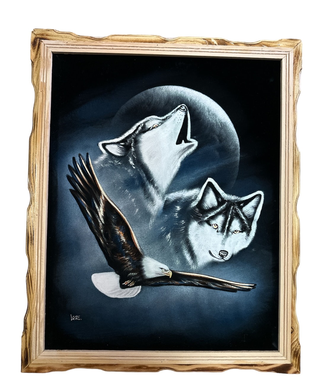18" X 22" HAND PAINTED WOLF , Velvet Painting , Framed , Signed ...