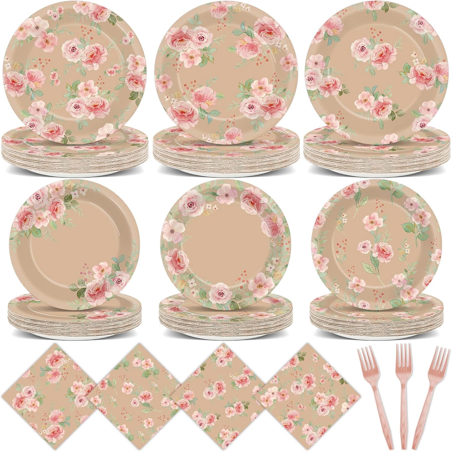 96Pcs Vintage Flower Party Supplies Spring Kraft Floral Themed Paper ...
