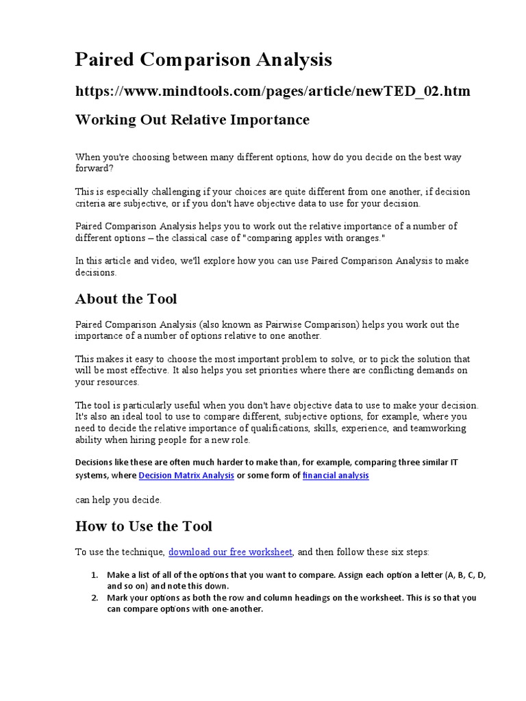Paired Comparison Analysis: A Practical Tool for Evaluating Options and ...