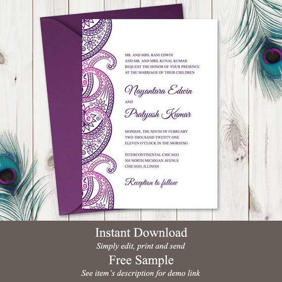Paisley Wedding Invitation | Printing wedding invitations, Free ...