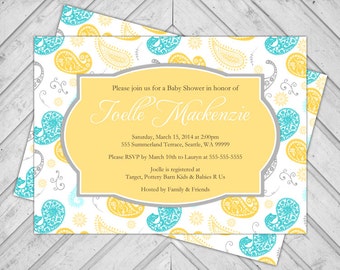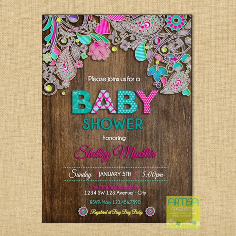 Paisley Baby Shower Invitation - Baby Shower Invitation Paisley - Wood ...