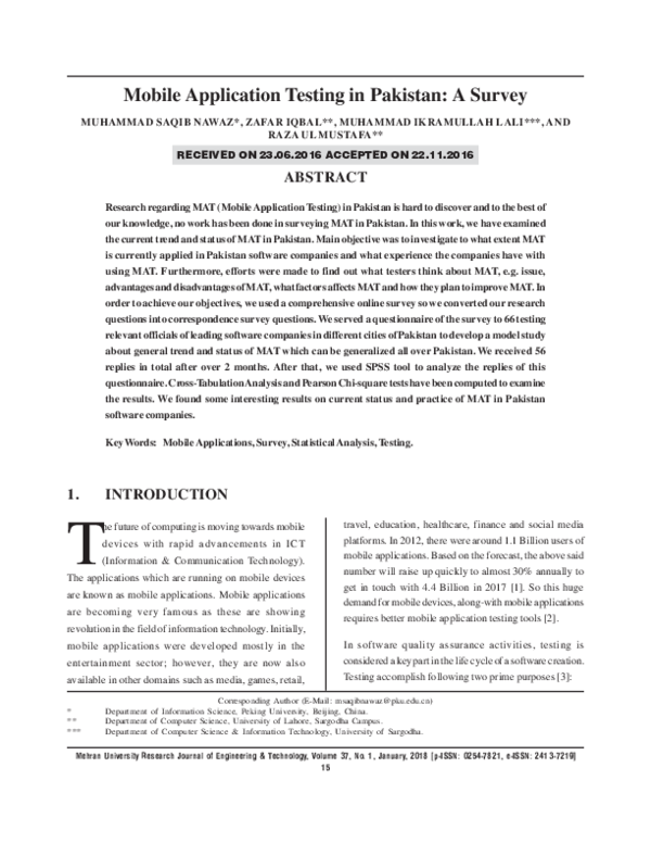 (PDF) Mobile Application Testing in Pakistan: A Survey