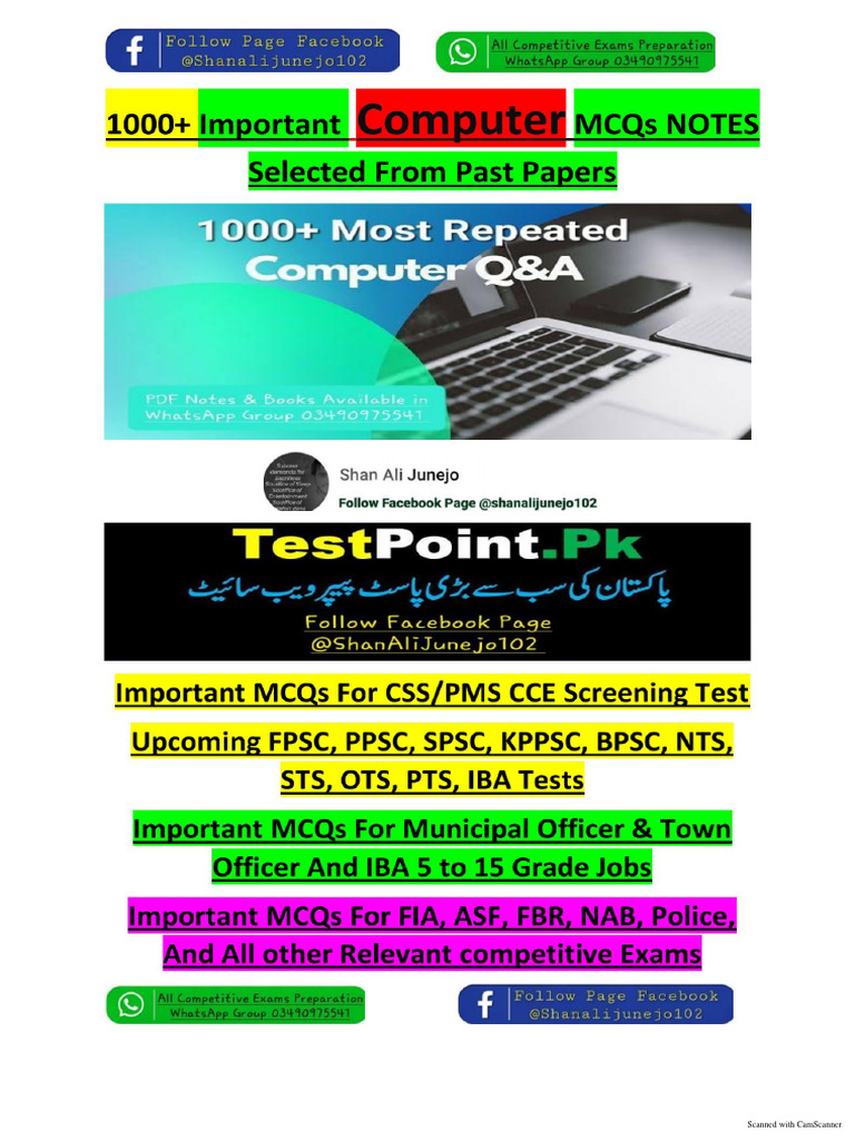 Computer 1000 Most Frequent MCQs - Test Point.pk Guide - Studocu