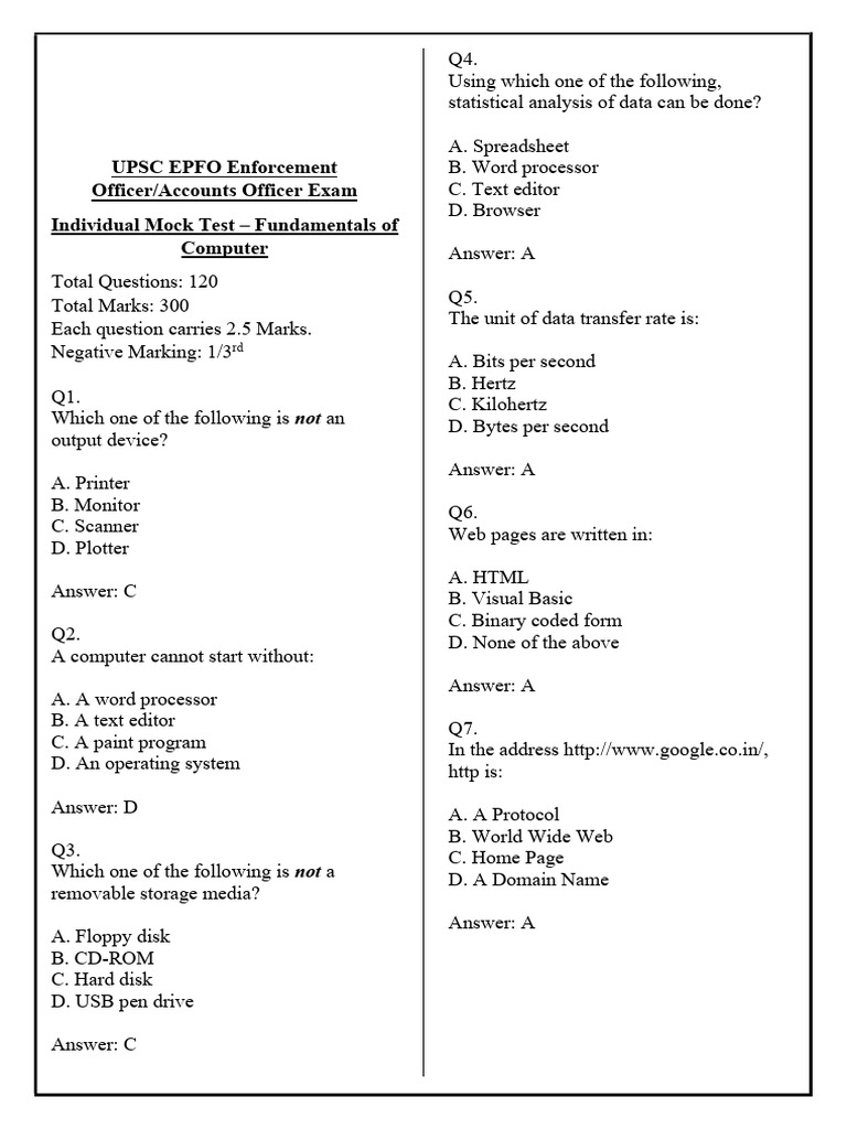 Computer Full Mock Test For All Punjab Competitive Exam | Computer ...
