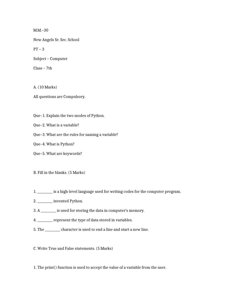 Full Book Test For Computer Science Part 2 Punjab Boards | PDF ...