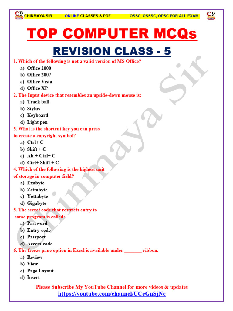 Computer Science Mcqs For PSC Exams - PUBLIC SERVICE COMMISSION & OTHER ...